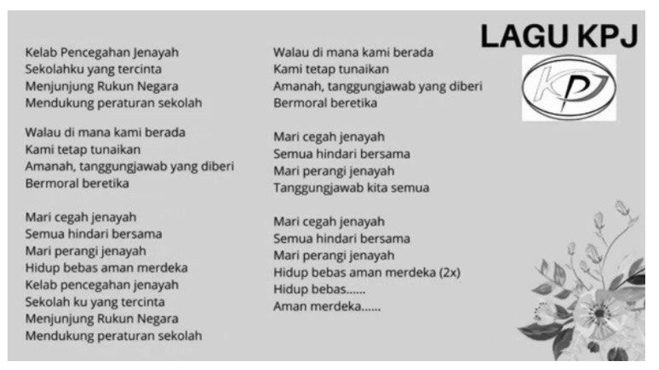 · huruf kpj bermaksud singkatan kepada kelab pencegahan jenayah.